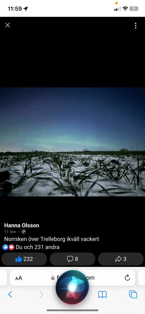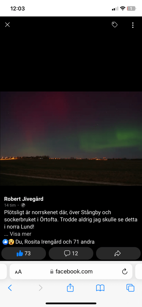 Norrsken över Lund igår.